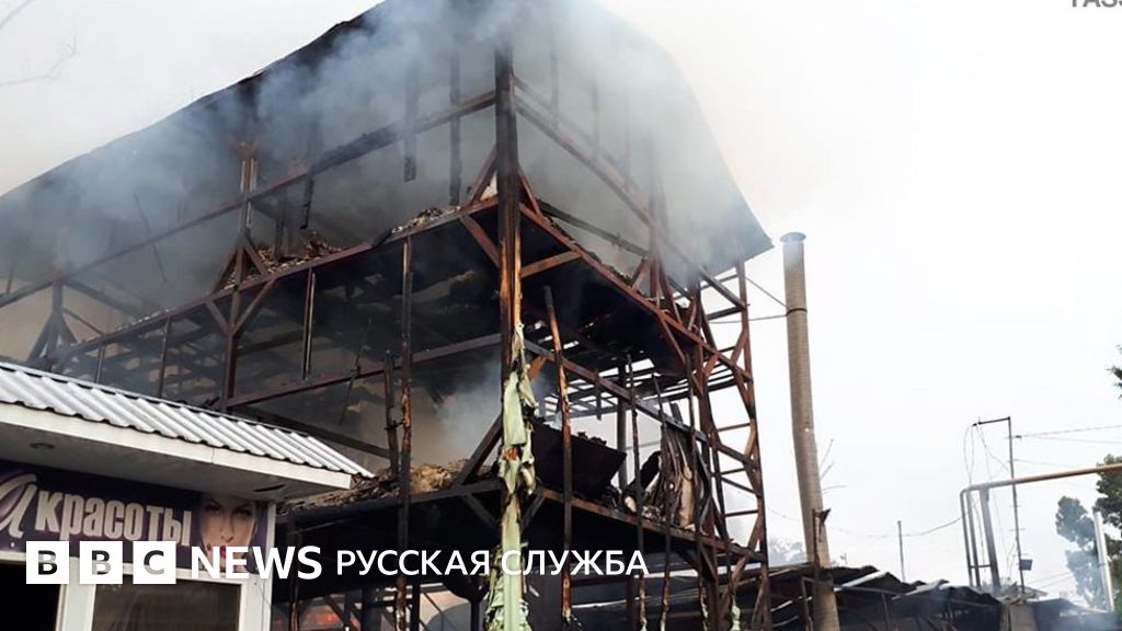 В мэрии города сообщили, что загорелся навес здания общепита, затем огонь перекинулся на временную металлическую конструкцию. В тушении пожара участвовали более 60 пожарных и спасателей, а также 19 единиц техники.