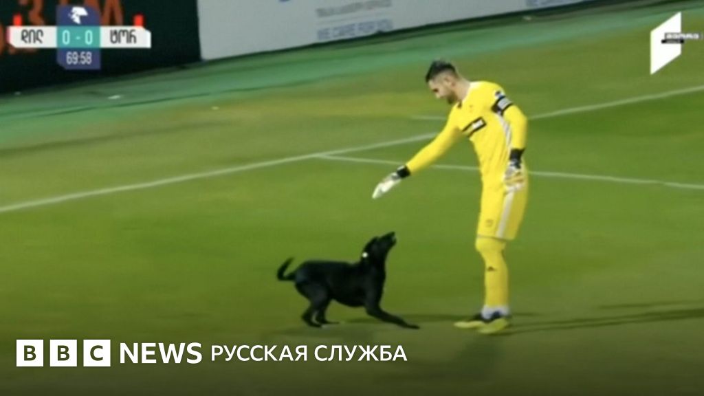 Подпись к видео, Пес-футболист сорвал матч в Грузии