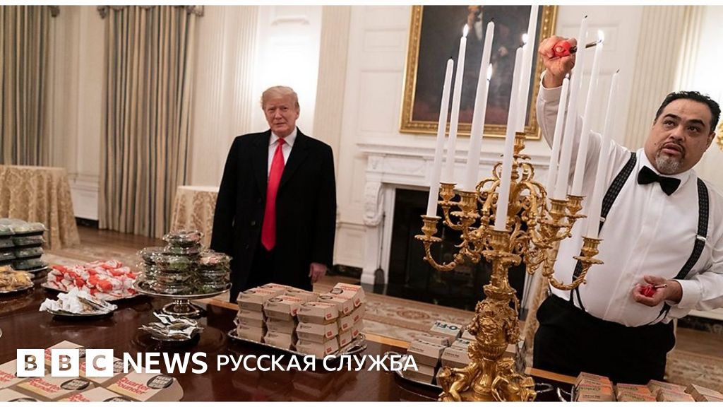 Дональд Трамп устроил традиционный званый ужин с победителями первенства США по американскому футболу. В этот раз гостей угощали бургерами, картошкой фри и пиццей. Как так вышло?