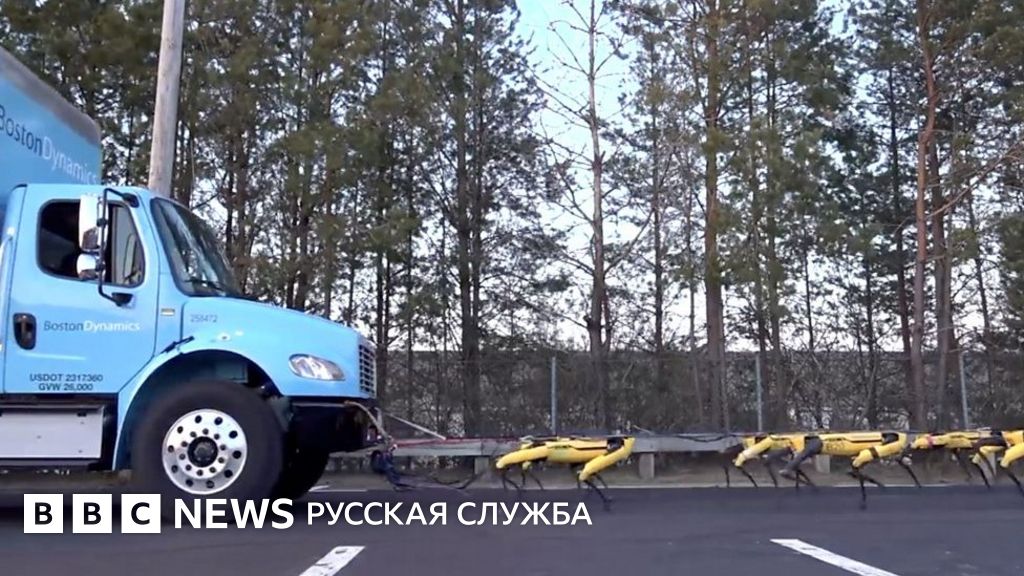 На этот раз стая собак-роботов SpotMini тащит грузовик.