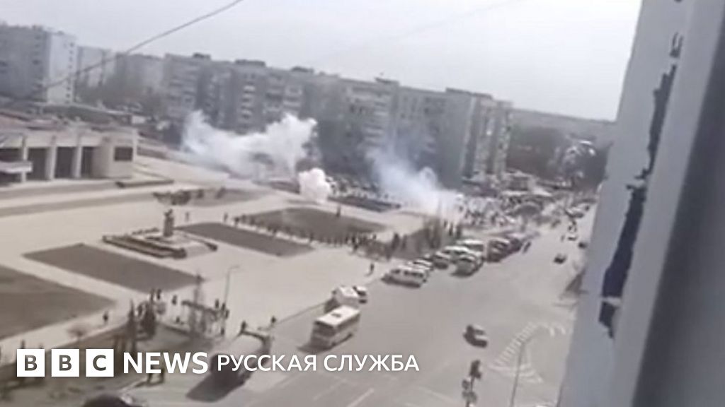 Разгон мирной акции протеста в Энергодаре - выстрелы и дым