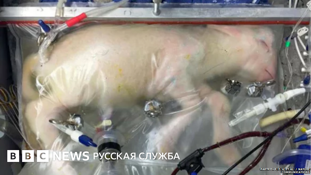 Помещенный в этот мешок ягненок не может получать кислород и питательные вещества через плаценту, но его пуповину подключают к специальному аппарату, который вырабатывает эти вещества.