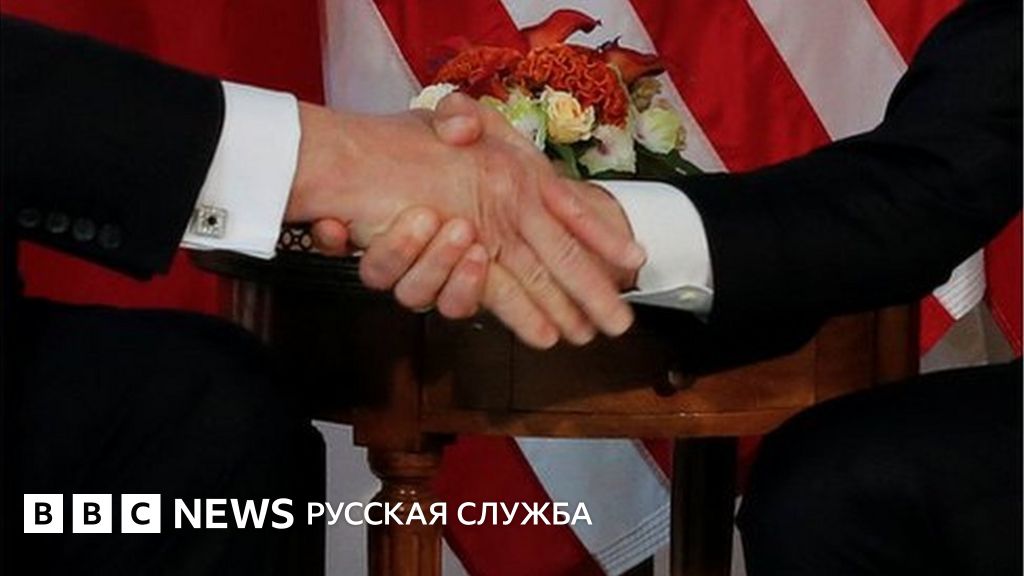 Рукопожатие длилось несколько секунд. Оба президента пристально смотрели друг другу в глаза, после чего, судя по всему, Дональд Трамп попытался освободить свою руку.