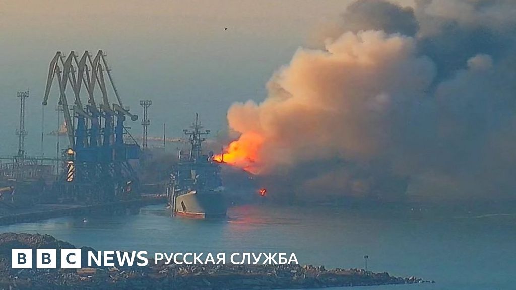 Видео, размещенное военно-морскими силами Украины, показывает взрывы и горящий большой корабль в порту. Украина заявляет, что "Орск" уничтожен, огонь, как сообщается, перекинулся и на другие суда, а также на склад боеприпасов и топливный терминал в порту.