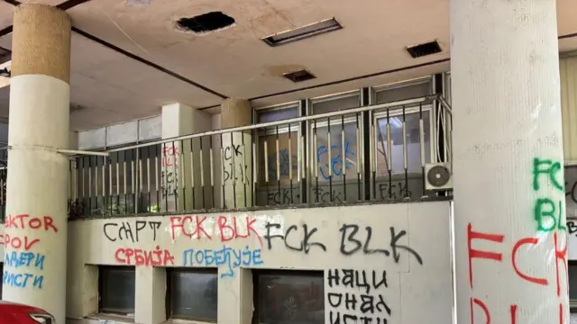 „Odlukom o komunalnom redu Grada Beograda propisan je prekršaj onome ko žvrljanjem, ispisivanjem, lepljenjem plakata narušava spoljni izgled zgrade", kaže advokat Miloš Janković za BBC na srpskom.