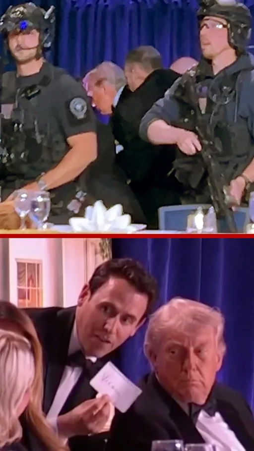 Потпис испод видеа, Трамп евакусиан са вечере за новинаре после пуцњаве