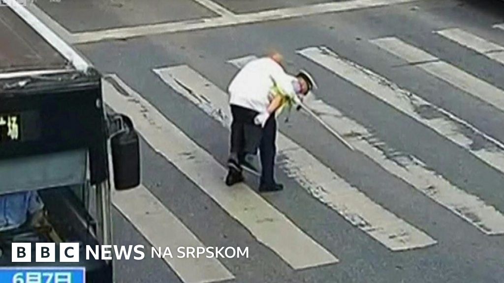 Stariji gospodin iz Mianjanga u Kini je dobio neuobičajenu vrstu pomoći pri prelasku ulice.
