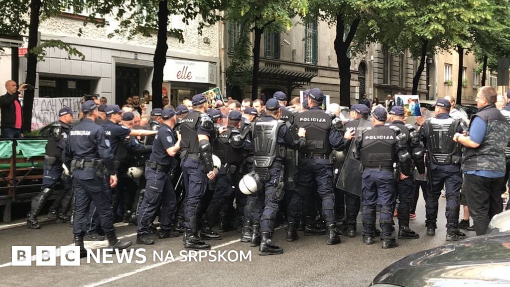 Potpis ispod fotografije, Grupa od nekoliko desetina demonstranata, među kojima je bio i Miša Vacić iz Srpske desnice, pokušala je da probije kordon policije ispred Centra za kulturnu dekontaminaciju gde se festival tradicionalno održava.
