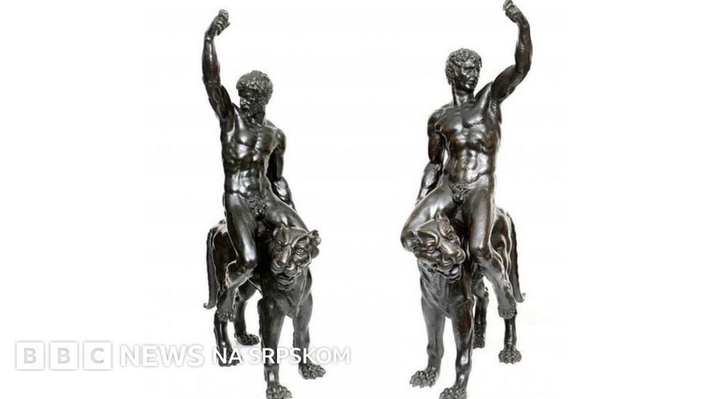 Statue visoke jedan metar prikazuju mišićave muškarce koji jašu pantere.