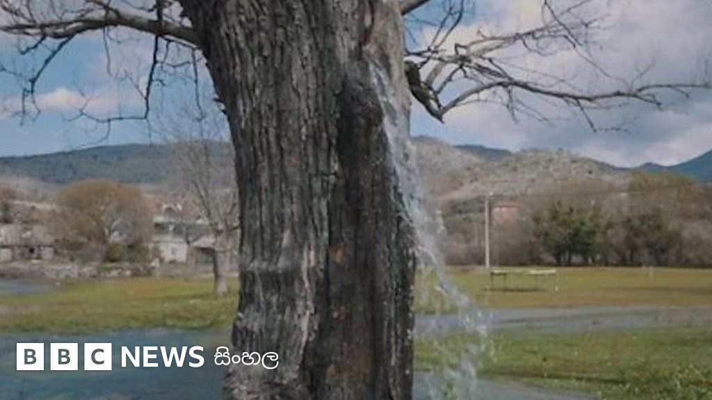 මොන්ටිනිග්රොහි ගමක පිහිටි කෙත් යායක තිබෙන ගසකින් අභිරස් ලෙස ජලය වේගයෙන් ගලායයි.
