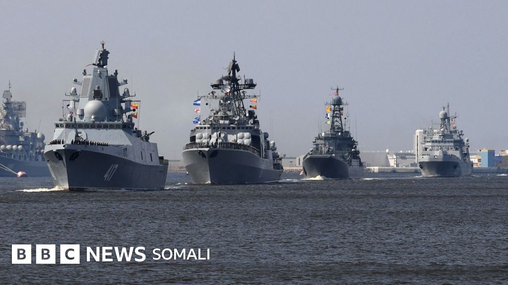 Sawirro lagu faafiyay baraha bulshada ayaa muujinaya markab dagaal oo Ruush ah iyo doomo kale oo sida Sahay, kuwaas oo ku sii jeeda Cape Town iyagoo maraaya xeebta galbeed ee Afrika.