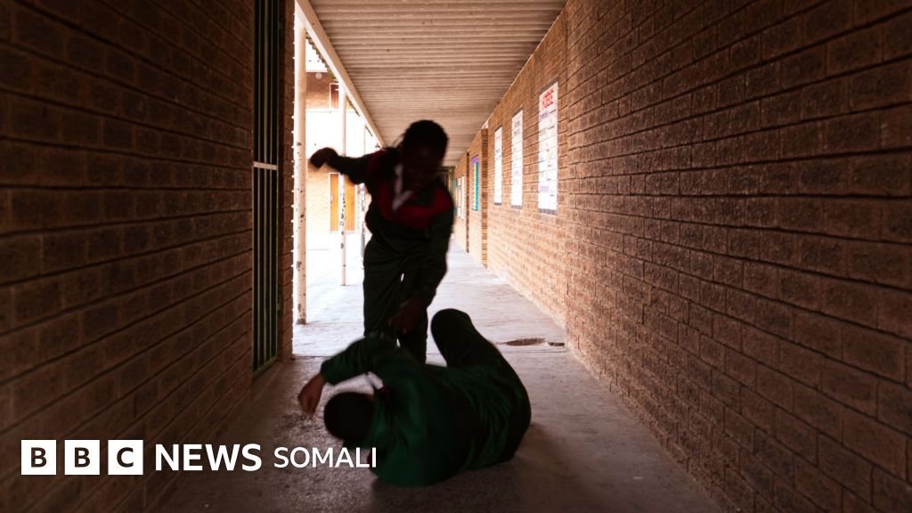 Sida muuqaalka ka muuqta kooxda ardayda ah ee falkaan u gaysanaya ardayga kale ayaa iyago oo kuleetiga haya waxay waxay isku dayayaan in ay madaxa u galiyaan qaybta fadhiya ee suuliga.