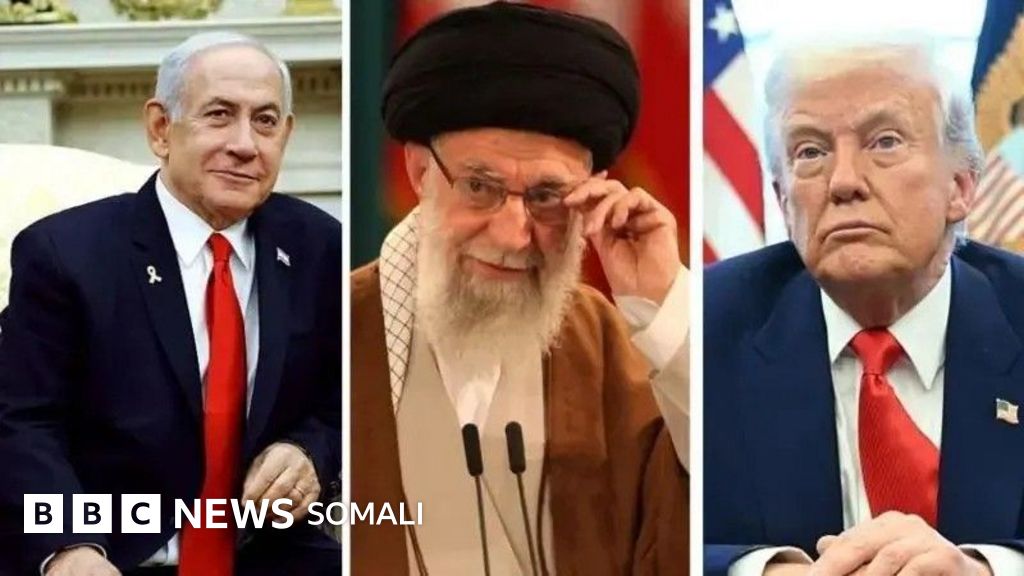 Ra'iisul wasaaraha Israa'iil Benjamin Netanyahu,hogaamiyaha sare ee Iiraan Cali Ayatollah Khamenei iyo Madaxweynaha Maraykanka Donald Trump.
