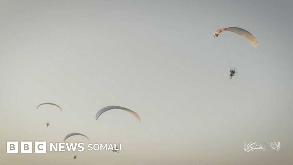 Muuqaallo ay sii daayeen warbaahinta Xamaas ayaa muujinaya dagaalyahanno hubeysan oo baarashuudyo wata oo kasoo duulaya Gaza.