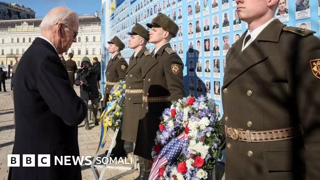 Booqashada Biden ee Ukraine ayaa timid maalmo ka hor xuska sanad guurada koowaad ee kasoo wareegtay duullaanka uu Ruushku ku qaaday dalkaas.