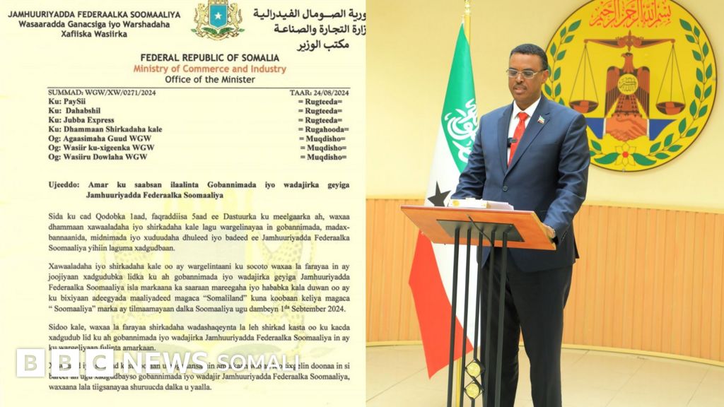 War qoraal ah oo ka soo baxay wasaaradda ganacsiga iyo warshadaha Xukuumadda Fedaraalka Soomaaliya ayaa amar lagu dul-dhigay xawaaladaha iyo shirkadaha kale ee ganacsiga kuwaas oo sida ku cad amarka lagu sheegay in lagu ilaalinayo gobanimada iyo wadajirka Soomaaliya.