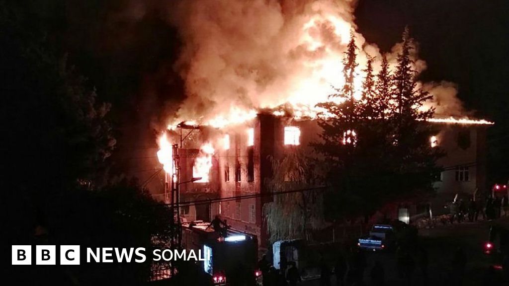 Muuqaal TV ayaa muujiyay dabka oo saqafka guryaha ka baxaya dabdamiskuna ay isku dayayaan in ay xakameeyaan.