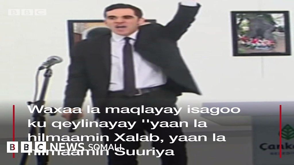 Mevlut Mert Aydintas ayaa toogtay Andrei Karlov oo khudbad jeedinaya Isniintii, iyadoo ay u muuqatay in ninkaasi uu diidanaa faragalinta Ruushka ee arrimaha magaalada Xalab ee dalka Suuriya.