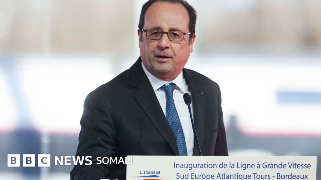 Hollande ka hadlayay munaasabad lagu furayay goob tareen oo cusub markii uu xabbadda maqlay. xoogaa ayuu hakiyay khudbadda, laakiin wararku waxay sheegayaan in uusan argagax dhicin.
