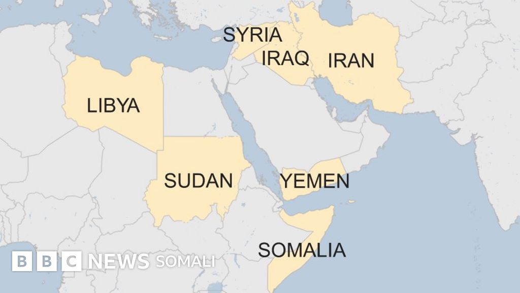 - Muwaadiniinta ka soo joode Soomaaliya, Suudaaan, Yemen, Liibiya, Suuriya iyo Iiraan ayaa laga mamnuucay in ay muddo 90 casho ah galaan dalka Maraykanka, lixdan dal ayuu sidoo kale saamaynayay go'aankii Trump ee 27 Janaayo.