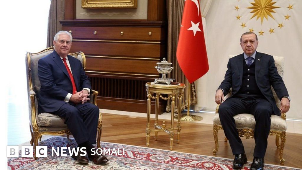 Xogahayaha Arimaha dibedda ee Maraykanka Rex Tillerson aaya magaalada Ankara kula kulmay madaxweynaha dalka Turkiga, Tayyip Erdogan.