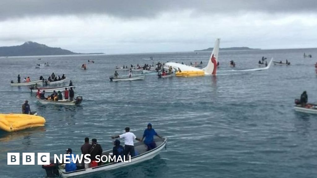 Sawirro laga qaaday ayaa muujinaya diyaaradda shirkadda Air Niugini oo ku jirta biyaha badda, diyaaradaas waxaa laga leeyahay dalka Papua New Guinea.