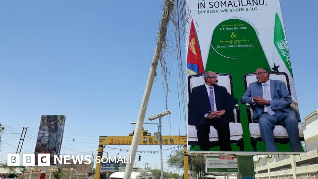 Boorar waaweyn oo muujinaya sawirka wasiirka iyo madaxweynaha Somaliland oo lagu qorey afka Ingiriiska ayaa la surey dariiqyada muhiimka ah ee magaalada Hargeysa sida uu BBC-da la wadaagay warfidiyeenka lagu magacaabo Khaalid Foodhaadhi oo ku foogan arrimaha Somaliland.