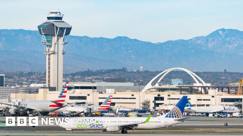 Nin ayaa ka booday diyaarad ka sii kacaysa garoonka diyaaradaha ee magaalada Los Angeles, ka dib markii uu isku dayay inuu galo qolka diyaaradda laga haga.