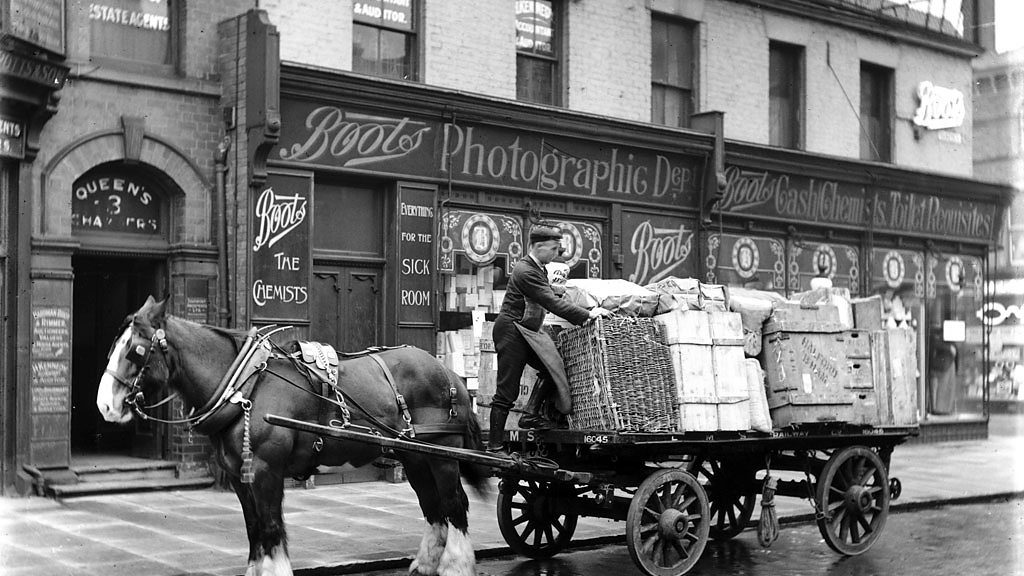 Jonathan Freedland takes the Long View of the recent purchase of Cadbury by Kraft, comparing the deal with the takeover of Boots the Chemist by an American company in 1920. When the founder of the chain, Jesse Boot, put it up for sale it prompted a storm of controversy in the local and national press. A rival chain responded by marketing itself as the 'biggest British chemist', playing on the idea that Boots had betrayed their national roots. The takeover prompted a period of austerity in the company as the American owners embarked on an efficiency drive. Jonathan draws on the lessons of the Boots takeover, asking how important it is for national brands to remain in British hands. Guests include Lord Digby Jones and Stefan Stern of The Financial Times, and readings are provided by James Coombes, former Milk Tray Man. Image: Man unloading goods from a cart in front of a Boots store, 1915.