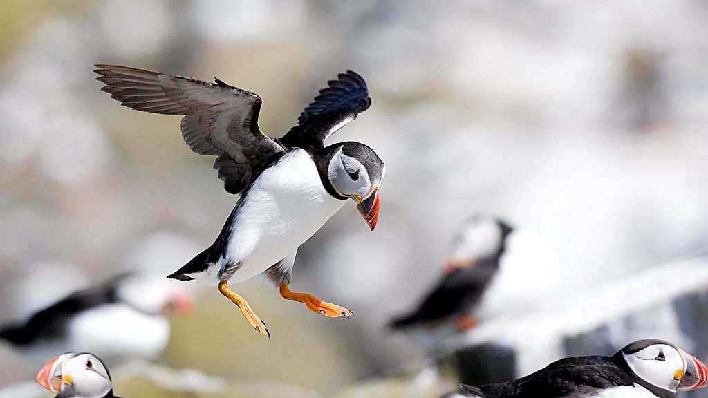 Just 2 miles off the Northumberland coast, the numerous Farne Islands, viewed from the mainland resemble a dark pod of whales in the glistening North Sea. For Living World this week, Paul Evans is on a quest to learn more about one of our favourite seabirds, the puffin. Catching an early boat, he arrives on Inner Farne to all the sounds and smells of a seabird colony at the height of the breeding season. Here he is met by David Steele, a warden on these islands for 11 years. To begin their adventure, they must head towards the Pele tower, which means that David and Paul have to negotiate the dive bombing attacks of another breeding bird on the island, the Arctic tern. Avoiding razor sharp bills is not for the faint hearted, the terns though are just protecting their eggs and chicks which are all around Paul's feet as he walks. Scrambling to the top of the Pele tower this allows not only a respite from the bombarding terns but a panoramic view of the island beyond the adult puffins relaxing on the edge of the tower. Paul encounters a wandering puffin in the courtyard allowing an opportunistic, if painful, close up encounter with this charismatic member of the auk family. But where do these birds breed? David leads us over to the grassy slopes near the sea cliffs where, with his arm all the way down a burrow, he searches for the single downy chick. Blinking in the summer sun, this chick has never seen daylight before. But in just a few short weeks on a dark night, it will leave the safety of its burrow for ever. With no assistance from its parents, it will scramble across the island and swim off into the great unknown of the North Sea for three solitary years, before returning once more to land to breed as an adult.