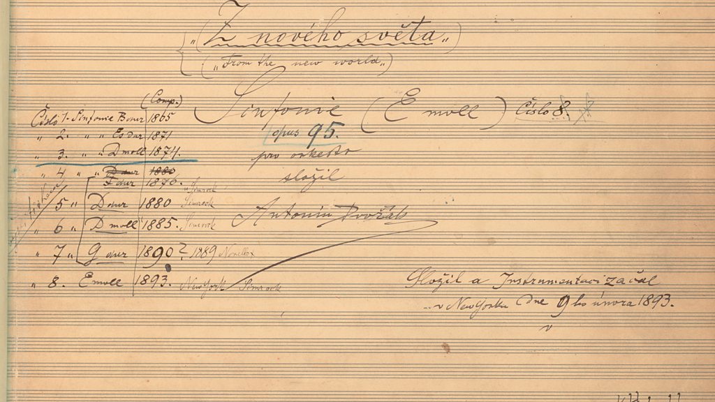 Frances Fyfield begins a new series of Tales from the Stave with one of the most popular Symphonies ever written. Dvorak's Symphony 'From the New World' was composed during his time working in American in the 1890's. There have been claims and counter-claims about his use of spirituals and native American music but the manuscript, held at the Czech National Museum of Music in Prague, and the accompanying sketchbooks, tell a story of both inspiration and craft. Frances is joined by the world renowned Czech conductor Jiri Belohlavek, the American music historian David Beveridge and, given the famous tune from the second movement, the Cor Anglais player Vladislav Borovka. To Vladislav and most Czechs it's difficult to imagine this melody having anything to do with 'bread' (let alone Hovis!) but so it is for British audiences. However, the sketchbooks reveal a fascinating evolution of both this tune and several others that make this work so beloved of audiences the world over. The first movement, for example, was originally conceived in a major key. 'How strange' as an American songwriter was to opine some time later 'the change from Major to Minor.' Producer: Tom Alban.