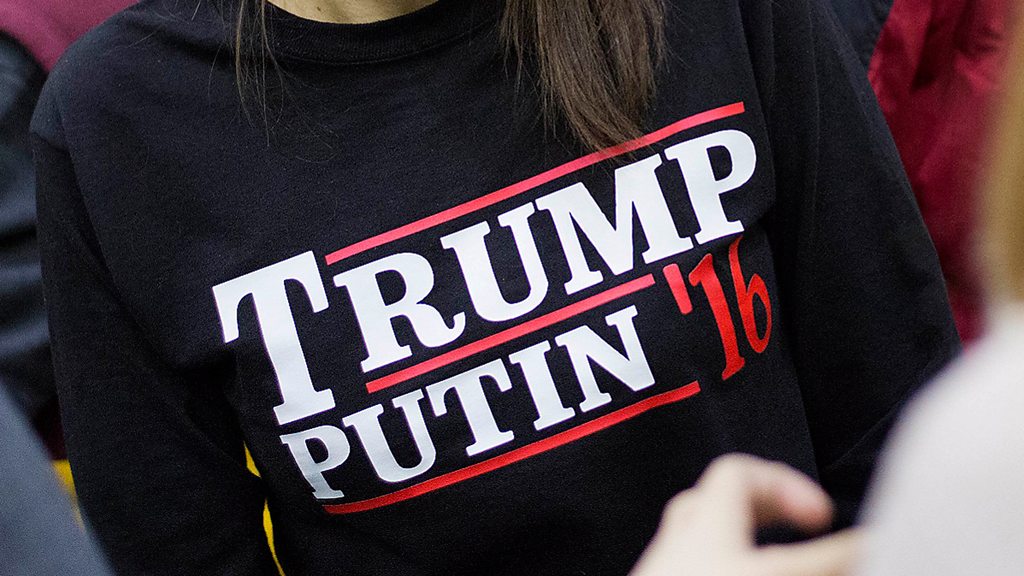 It's one of the strangest developments in a very strange election campaign. The Russian president, Vladimir Putin, says Donald Trump is "colourful and talented". For his part, the Republican nominee says Putin "is very much a leader ... far more than our president has been a leader." More than flattering words, on specific policy points - such as the civil war in Syria, the influence of NATO in Eastern Europe, and sanctions against Russia imposed over the conflict in Ukraine - Trump and his advisors seem sympathetic if not outright supportive of Putin's foreign policy objectives. Donald Trump's policies are a startling departure from the normally hawkish Republican Party establishment, and Hillary Clinton and the Democrats have wasted no time in painting Trump's Russia links as a threat to national security. Meanwhile, according to reports in the American press, Russian intelligence agencies are actively looking to disrupt the election. The hack of Democratic National Committee emails, whose contents were released in July, is just one noteworthy example. In this edition of the Briefing Room, David Aaronovitch asks is Donald Trump Russia's man, or just anxious to rebuild half-burned bridges? Joining David Aaronovitch in The Briefing Room this week will be: Gabriel Gatehouse, BBC International Investigations Correspondent Anne Applebaum, columnist for The Washington Post and director of The Transitions Forum, The Legatum Institute Franklin Foer, fellow at the New America think tank and a contributing editor to Slate.com Producer: Michael Wendling Researcher: Kirsteen Knight Editor: Innes Bowen.