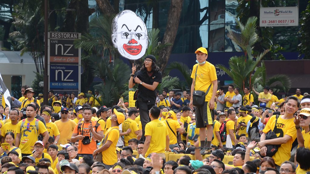 Malaysia's government is mired in scandal. Billions of dollars have been looted from a state investment fund. The Prime Minister is accused of receiving $681 million into his personal bank account, although he has denied any wrongdoing. Earlier this year, punk-inspired artist Fahmi Reza captured public dissatisfaction with an artwork caricaturing the PM as a clown. The image went viral, earning Reza comparisons to street-art provocateur Banksy. It also got him arrested and charged, one of an increasing number of Malaysians facing prison as the government ramps up its suppression of free speech and dissent. James Fletcher travels to Malaysia on the eve of a major protest rally in Kuala Lumpur. The protest movement is known as 'Bersih', meaning 'clean', and over the past few years they've mobilised hundreds of thousands of people on the streets, dressed in yellow t-shirts, to demand transparency, fair elections, and the PM's resignation. This year they're aiming for their biggest turnout yet. Fahmi Reza is designing placards for the protesters, and plans to attend carrying a giant version of his clown carricature. But the government is doing everything it can to stop the protest. And there's a new threat - pro-government protesters called the "redshirts", who have disrupted rallies with violence and threatened independent media and free speech advocates. James spends time with all sides as the protest unfolds. Can art and activism bring Malaysians on to the streets and spur change? Or will the government's crackdown, and the more direct methods of the "redshirts", dampen the protests and allow the PM to ride out criticism and stay in power? Image: The artist Fahmi Reza with his caricature of Malaysia’s Prime Minister Najib Razak at the Bersih 5 protest rally held on November 19, 2016. Photo Credit: BBC