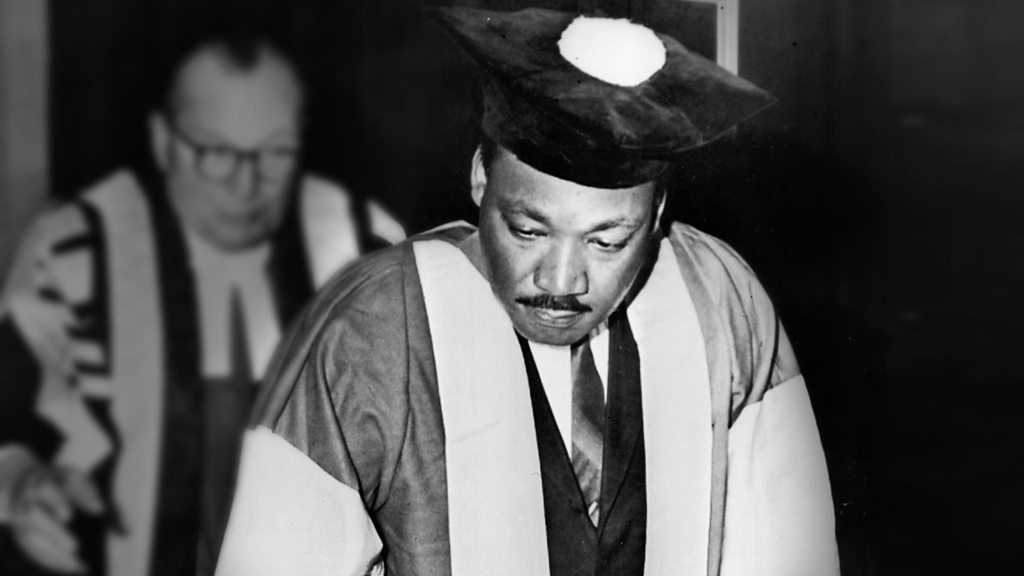 'There are three urgent and indeed great problems that we face today... that is the problem of racism, the problem of poverty and the problem of war.' The words of Martin Luther King in 1967 when he visited Newcastle upon Tyne to receive an honorary degree. Words that underlie a discussion about poetry and protest which features in the festival marking the 50th anniversary of that visit. The poets Jackie Kay, Fred D'Aguiar and Major Jackson join Shahidha Bari and an audience at Newcastle University to explore the nature of protest poetry and to launch a poetry anthology celebrating the spirit of Dr King. Producer: Zahid Warley. MAJOR JACKSON Going to Meet the Man As if one day, a grand gesture of the brain, an expired subscription to silence, a decision raw as a concert of habaneros on the lips: a renewal to decency like a trash can smashing a storefront or the shattering glass face of a time-clock: where once a man forced to the ground, a woman spread-eagled against a wall, where a shot into the back of an unarmed teen: finally, a decisive spark, the engine of action, this civilian standoff: on one side, a barricade of shields, helmets, batons, and pepper spray: on the other, a cocktail of fire, all that is just and good "Going to Meet the Man" originally published by W. W. Norton & Company, Inc. in Holding Company,(c) Major Jackson, 2010 The Mighty Stream: Poems in Celebration of Martin Luther King edited by Carolyn Forché and Jackie Kay is published by Bloodaxe. Photo: Dr. Martin Luther King, Jr. signs the Degree Roll At Newcastle University after receiving an honorary Doctor of Civil Law degree, Newcastle, England, November 14, 1967. Credit: Getty Images.