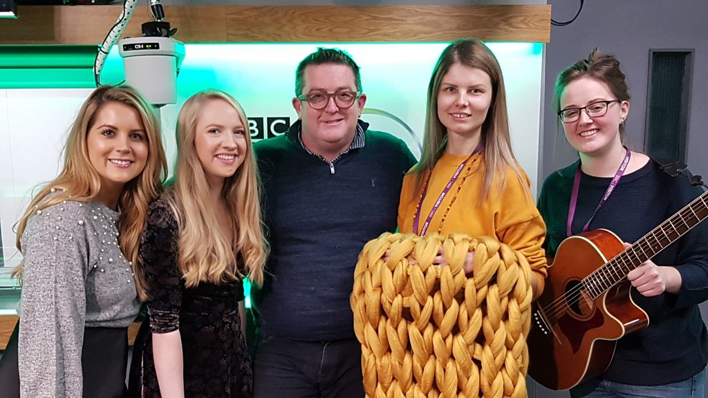 In the studio John is joined by Pamela Laird from Dublin, who still has all to play for in the BBC's new series of the Apprentice. Christine Donaghy talks to John about living with the sleeping disorder narcolepsy. Agne Nazebetauskaite is a designer from Magherafelt who runs workshops in arm knitting and demonstrates the craft in the studio. John visits the multi-national Junior Primary School, Drelincourt, in Armagh and their award winning film club and Paula bakes choux buns with chocolate and spiced orange cream.