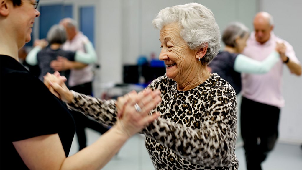 A story, told in dance steps, of people with Parkinson’s finding balance in the movements and rhythms of the Argentine tango. Four couples living with Parkinson’s disease attend a dance class for people with balance issues. The dance becomes entwined with their stories as they master the basic walking steps of the Argentine tango and work towards a choreographed performance for a group of people newly diagnosed with Parkinson’s. Along the way, they reflect on how dancing is helping them to confront their diagnosis and what it means to them. Roy Jones has been living with Parkinson’s for over twenty years. He and his wife Pat are learning Argentina’s ‘walking dance’ as a way to counteract the loss of movement associated with the condition. “If I freeze, I automatically think of a dance step and it kick-starts my brain,” says Roy. “It’s like having a tooth missing from a cog. Suddenly you jump that missing tooth, and I’m moving again… I’m dancing… and that’s where I want to be.” Joy Rainbird attends the class every week with her husband John as a way to overcome his rapidly advancing Parkinson’s. “It takes me back to when we were confident and I used to trust John to hold me and sway me and lead me...” Julie Douglas, who partners her mother, finds dancing an escape from the frustration of trying to do things with Parkinson’s. Norman Moore and his wife Glynis use the tango steps to overcome the physical “stutter” of his condition. Produced by Cicely Fell A Falling Tree production for BBC Radio 4 [photo credit: Cicely Fell]