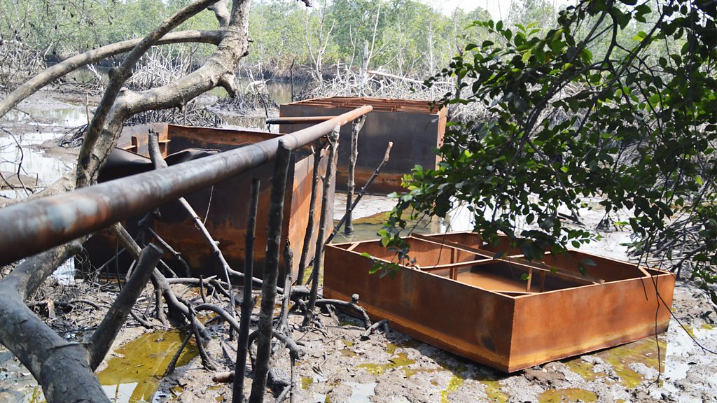 Illegal oil is big business in the Niger Delta. Oil thieves cut the pipelines, siphoning off oil, which they refine in the bush and sell on the black market. This vast underground industry is a huge employer in the region but it’s a dangerous business. Earlier this year, over 100 people were killed in an explosion at an illegal refinery. The local government has been cracking down on the illegal oil trade. They say the business is responsible for the worryingly high levels of pollution in the Niger Delta, where a thick black smog hangs over the city of Port Harcourt and oil runs through the waterways, destroying mangroves. BBC West Africa correspondent Mayeni Jones meets an oil thief king pin, an exuberant local politician, taking on this illegal business and treks deep into the forests of the Niger Delta to visit an underground refinery. Presenter: Mayeni Jones Producer: Josephine Casserly Editor: Penny Murphy Production Coordinator: Gemma Ashman