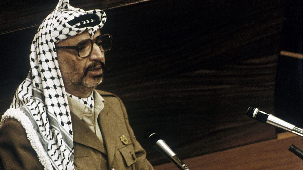 Yasser Arafat's speech at the UN, the denial of his visa by US secretary of state George Schultz, and the view that Palestinians are moving towards reconciliation with Israel.