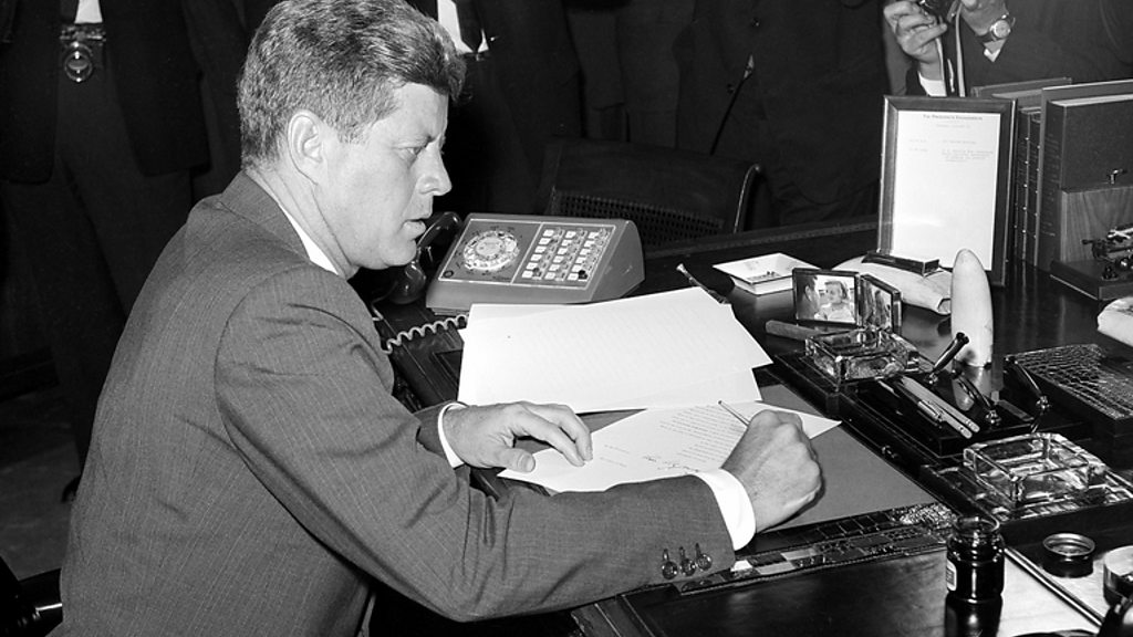 The Cuban Missile Crisis brought the world to the brink of nuclear war. Dino Brugioni was a CIA expert whose job was to interpret the photographs of missiles in Cuba. Photo: President Kennedy in the White House during the crisis. Associated Press