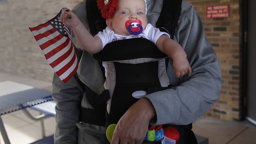 BBC World Have Your Say's Ros Atkins travels across the USA to find out if America is working. We hear from farmers, factory workers, actors, truckers, members of the military and office workers ahead of the presidential election. (Image: A baby with an American flag. Credit: REUTERS/Shannon Stapleton)