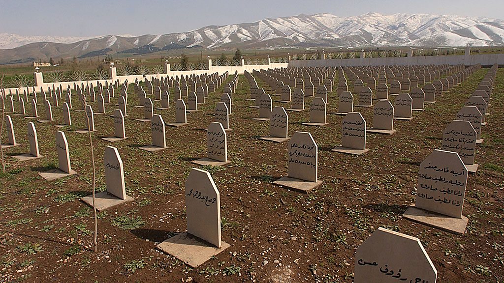 In March 1988, Saddam Hussein unleashed the full cruelty of chemical weapons, attacking the rebellious Kurdish town of Halabja. It is estimated that the mustard gas and other chemicals killed at least 5000 civilians. They were hastily buried in mass graves, unidentified and unidentifiable, because of the continued risk of poisoning. There are still traces of mustard gas remaining in cellars in the town, making them inaccessible to this day. The BBC's foreign affairs editor John Simpson returns to Kurdistan nearly 25 years after this chemical attack on civilians. With the fall of Saddam Hussein's regime, and his trial and execution in 2006, much has changed in this region of Iraq, but for many citizens of Halabja there remains a quest for justice. A British forensics company now believes it can help by identifying the precise chemicals used and the European companies suspected of supplying them. Now a British company is to start a four-year project to excavate Halabja, carrying out DNA tests on those who died in 1988 to identify the remains, find out exactly what killed them and to make the cellars safe. Their DNA tests may reveal whether indeed the precursor chemicals for the mustard gas used in 1988 was, as is believed, manufactured by a German company. Saddam Hussein's mustard gas was unique, with a particular binding chemical agent not used anywhere else. No proper tests have been carried out until now to identify the particular gas used in the attack. John reports on the science of the DNA and chemical/biological gas tests, investigates the role of Germany in providing the chemicals, and hears the heart-wrenching stories of survivors wanting to locate the bodies of their relatives, a quarter of a century on. (Image: Gravestones, Credit: Getty Images)