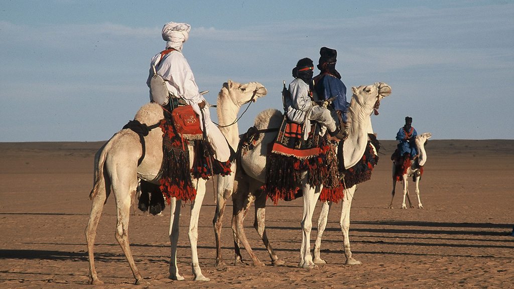 Islamist rebel groups in Northern Mali recently announced a ban on music in all areas under their control. We take you back to the first Festival in the Desert in 2001, which launched Tuareg music on the world scene. Photo: Tuareg at first Festival in the Desert. Copyright Andy Morgan