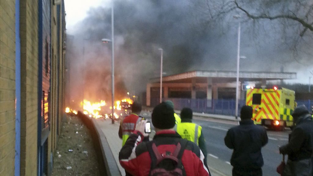Eyewitnesses Aaron & Quinn describe the scene as a helicopter crashed in Vauxhall, London.