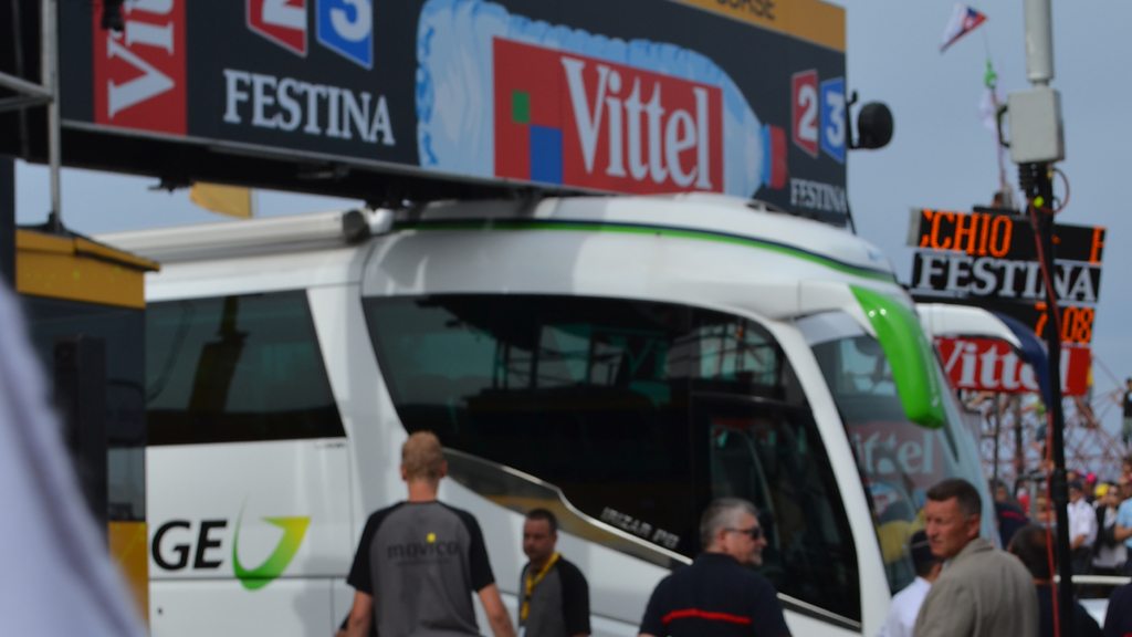 A team's bus got stuck under an arch at the finish line of the first stage of the Tour de France. Producer Olie D’Albertanson decided to go down to the bus and get a closer inspection.