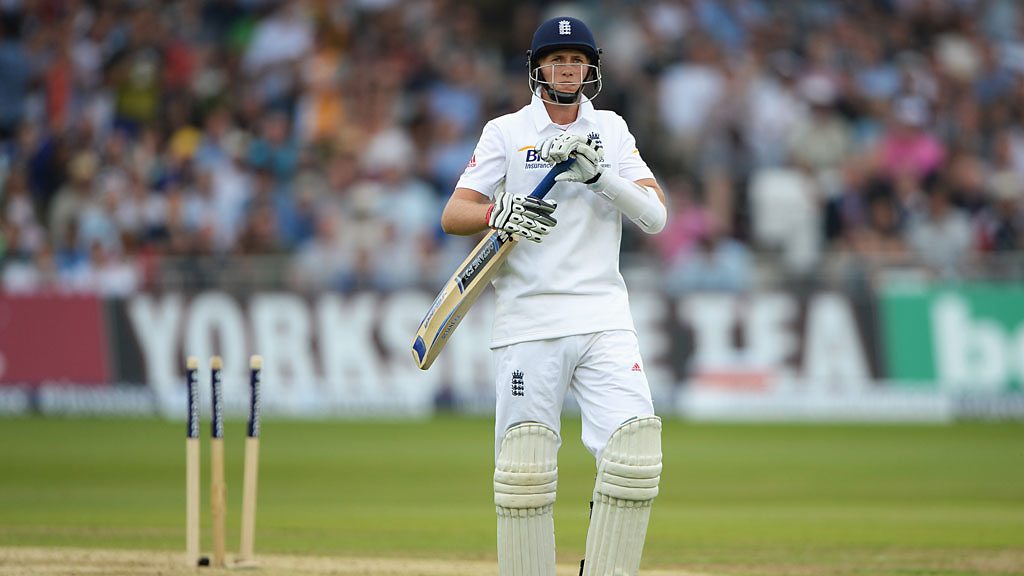 England's Joe Root is bowled out for 30 in the 1st Ashes Test at Trent Bridge.
