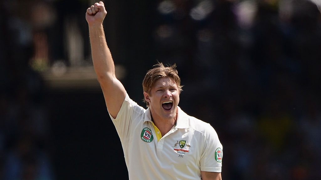 Australia's Shane Watson takes the wicket of England captain Alastair Cook leg before wicket for 12.