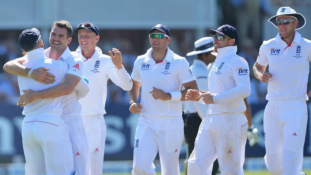 Australia's Ashton Agar darts down the pitch and turns to see Matt Prior take his bails