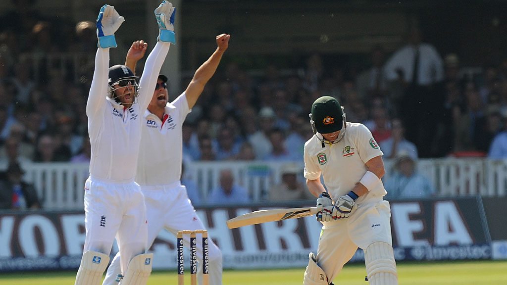 Australia's Brad Haddin is out for 7 lbw to Graeme Swann.