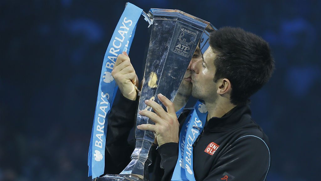 Novak Djokovic beats Rafael Nadal 6-3 6-4 at the 02 Arena in London to win the ATP World Tour final.