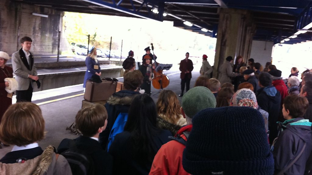 75 years ago, thousands of children escaping persecution in Nazi occupied Europe arrived at train stations across England on the Kindertransport. The story is told in the touring production "suitcase". Today that production arrived at Southampton Central railway station. BBC Radio Solent's reporter Neil Sackley has been on platform four all day, talking to those taking part.